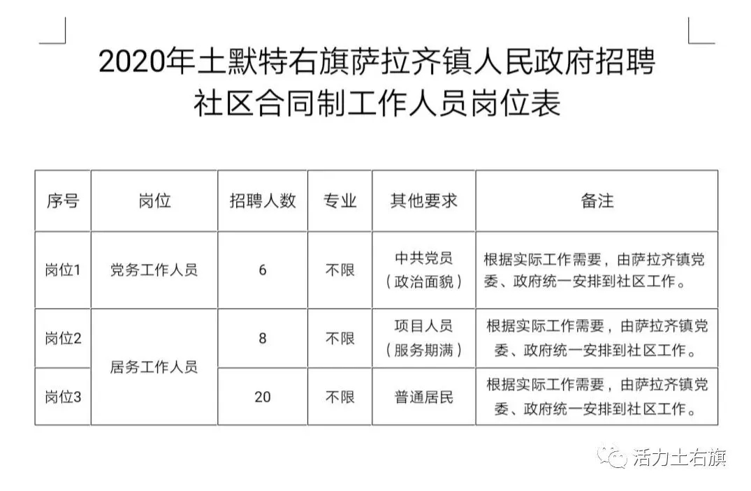 為進一步充實社區(qū)工作力量,優(yōu)化人員隊伍和年齡結(jié)構(gòu),提高社區(qū)服務(wù)水平,結(jié)合薩拉齊鎮(zhèn)社區(qū)工作需求的實際情況,按照“公平、公正、公開”的原則,面向社會招聘合同制社區(qū)工作人員,現(xiàn)將有關(guān)事宜公告如下: