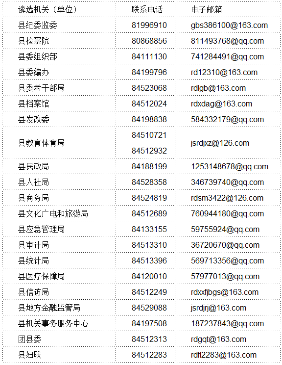 公開遴選機關(guān)(單位)聯(lián)系電話和郵箱地址