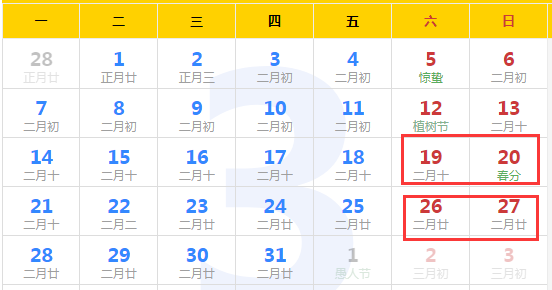 3月下旬,具體什么時間呢?不妨翻開日歷看看,符合要求的有兩個:3月19日和3月26日,你希望在哪一天考,小編特意查了都是宜出行的好日子,參加考試必能旗開得勝。