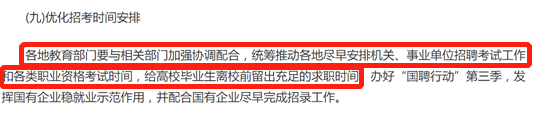 2020年12月,教育部發(fā)布《關(guān)于做好2021屆全國普通高校畢業(yè)生就業(yè)創(chuàng)業(yè)工作的通知》中明確表示在2021年6月之前完成編制招錄工作,然后2021公務(wù)員聯(lián)考全面提前,3月27、28日筆試(往年的聯(lián)考筆試時間一直在4月份)。